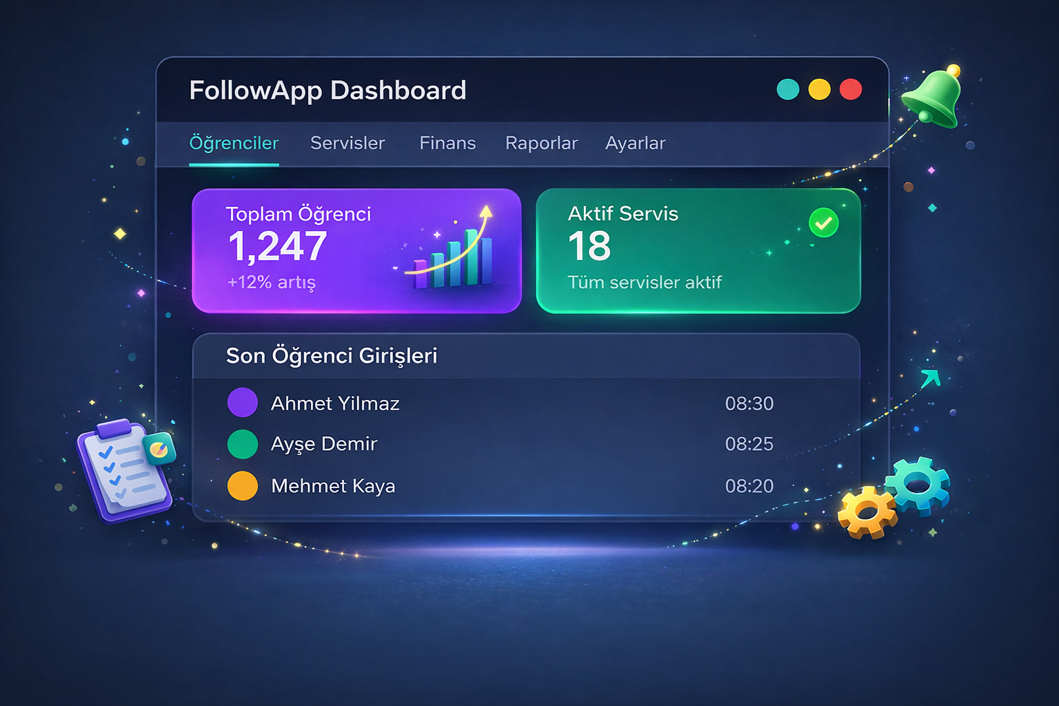 Akademik süreçler, servis takibi, finans yönetimi, hızlı satış ve daha fazlasını tek platformda birleştiren FollowApp ile işletmenizi tamamen dijitalleştirin. Modüler yapı sayesinde ihtiyaçlarınıza göre özelleştirilebilir.