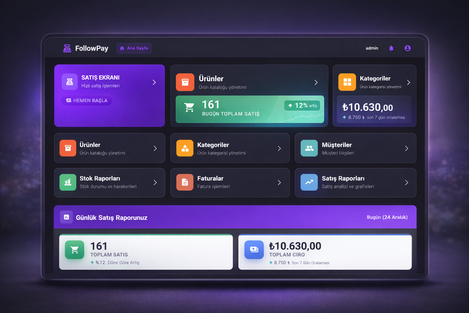 Akıllı POS yönetim sistemi ile satış süreçlerinizi hızlandırın, operasyonel yükü azaltın. QR kod ödemeler, stok takibi ve detaylı raporlar ile satışlarınızı optimize edin.